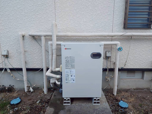 韮崎市藤井町 ノーリツ石油給湯機付ふろがまOTQ-4706AY 給湯器交換工事
